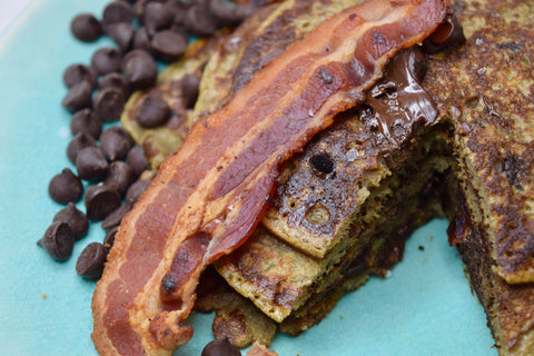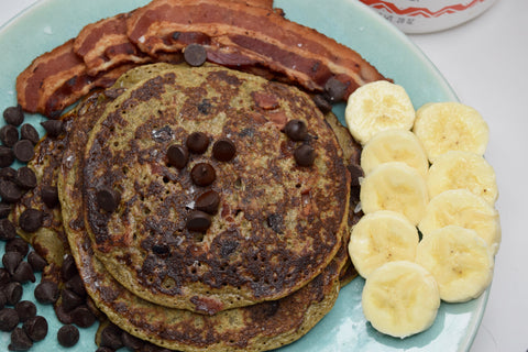 Lucky for you, we developed a chocolate chip banana pancake recipe that tastes a lot like those real pancakes you know and love, but only uses 100% paleo approved ingredients. They're super easy to make (you can whip them up in about 10 minutes), they're packed with protein, good fats, and other nutritious ingredients to help you start your day on the right note, and best of all-- the taste.